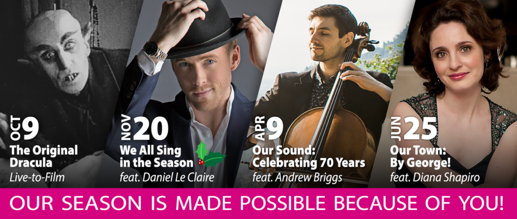 2021-2022 saw some relief from the safety restrictions of COVID-19. The Symphony and special guest artists were finally able to perform before live audiences, face-to-face with our community! It was a season of celebration—MSO turned 70! Although the pandemic did prevent one of our scheduled guest performers from joining us, the season as a whole was wonderful. Thank you to all of our supporters and especially to our orchestra members and Dylan Chmura-Moore for filling our hearts with music once again!